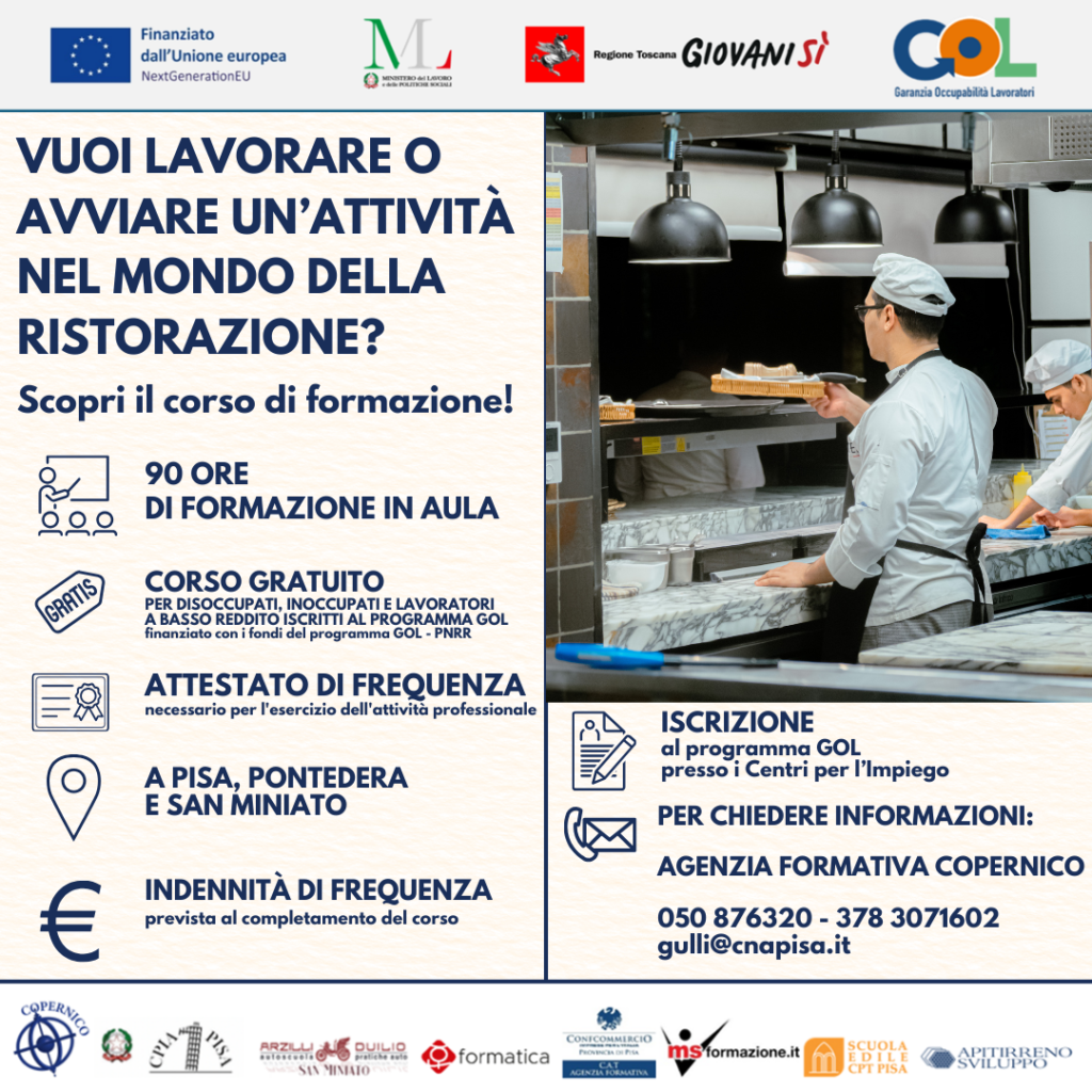 Non perdere questa occasione per migliorare le tue competenze e aprire nuove opportunità professionali, scopri il corso di formazione per diventare addetto o titolare nella ristorazione.