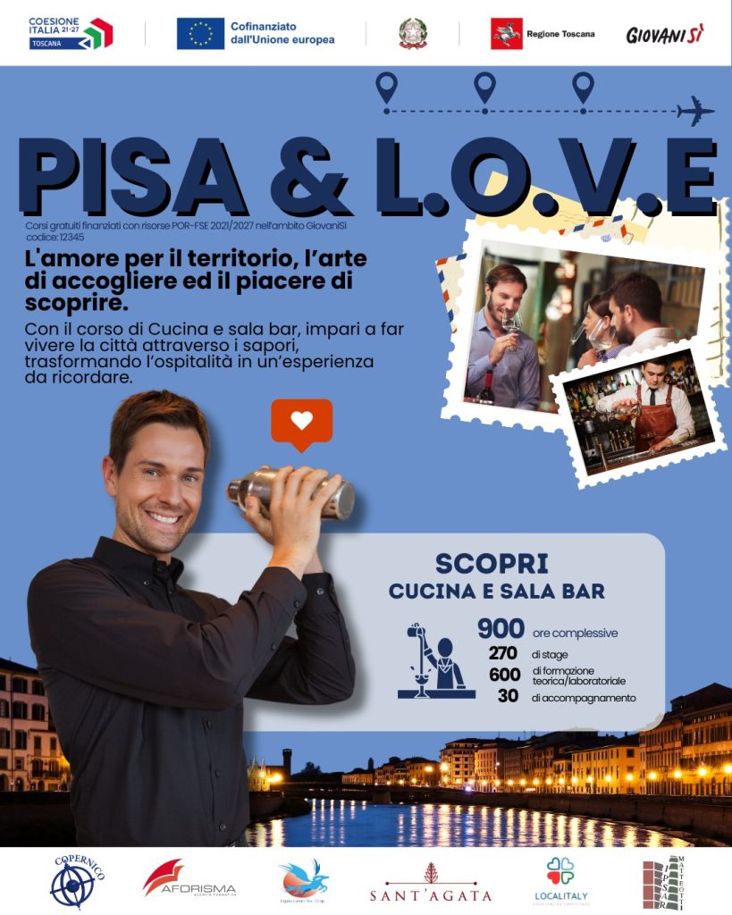 Con il corso gratuito cucina e sala bar – Addetto all’Approvvigionamento della Cucina e alla Preparazione di Pietanze e Bevande -, a Pisa, potrai acquisire competenze professionali e trovare lavoro in uno dei settori più dinamici della Toscana. Finanziato dalla Regione Toscana e inserito nel progetto Giovanisì, questo percorso formativo è completamente gratuito e offre concrete opportunità di lavoro nel settore turistico.
